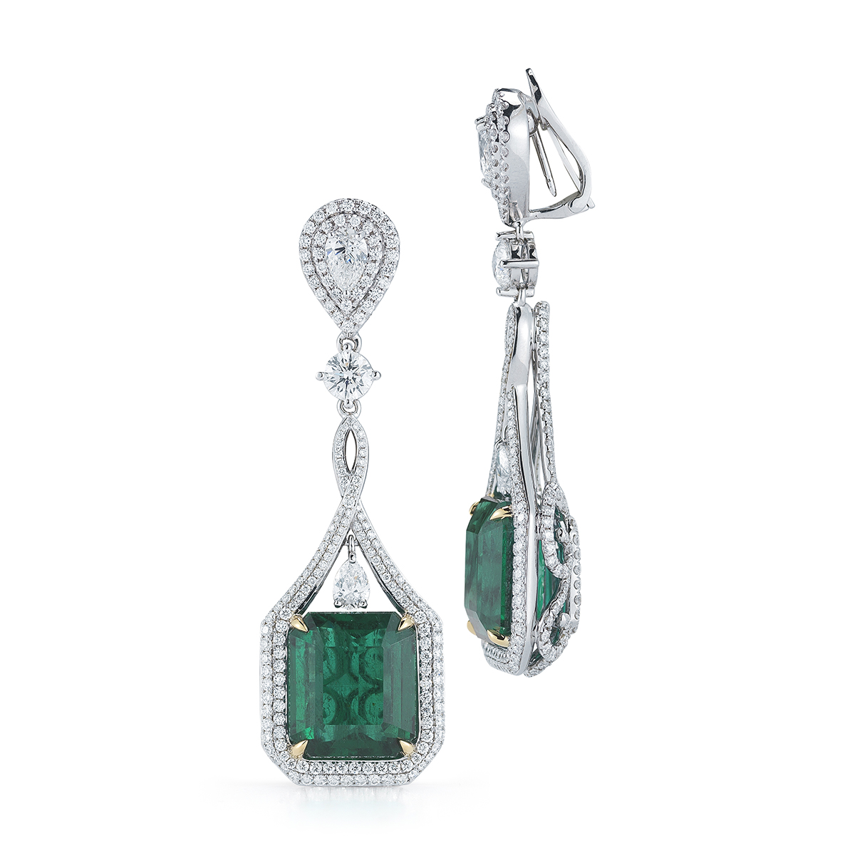 A luxurious drape is what elevates these elegant Emerald and diamond earrings to the next level.
