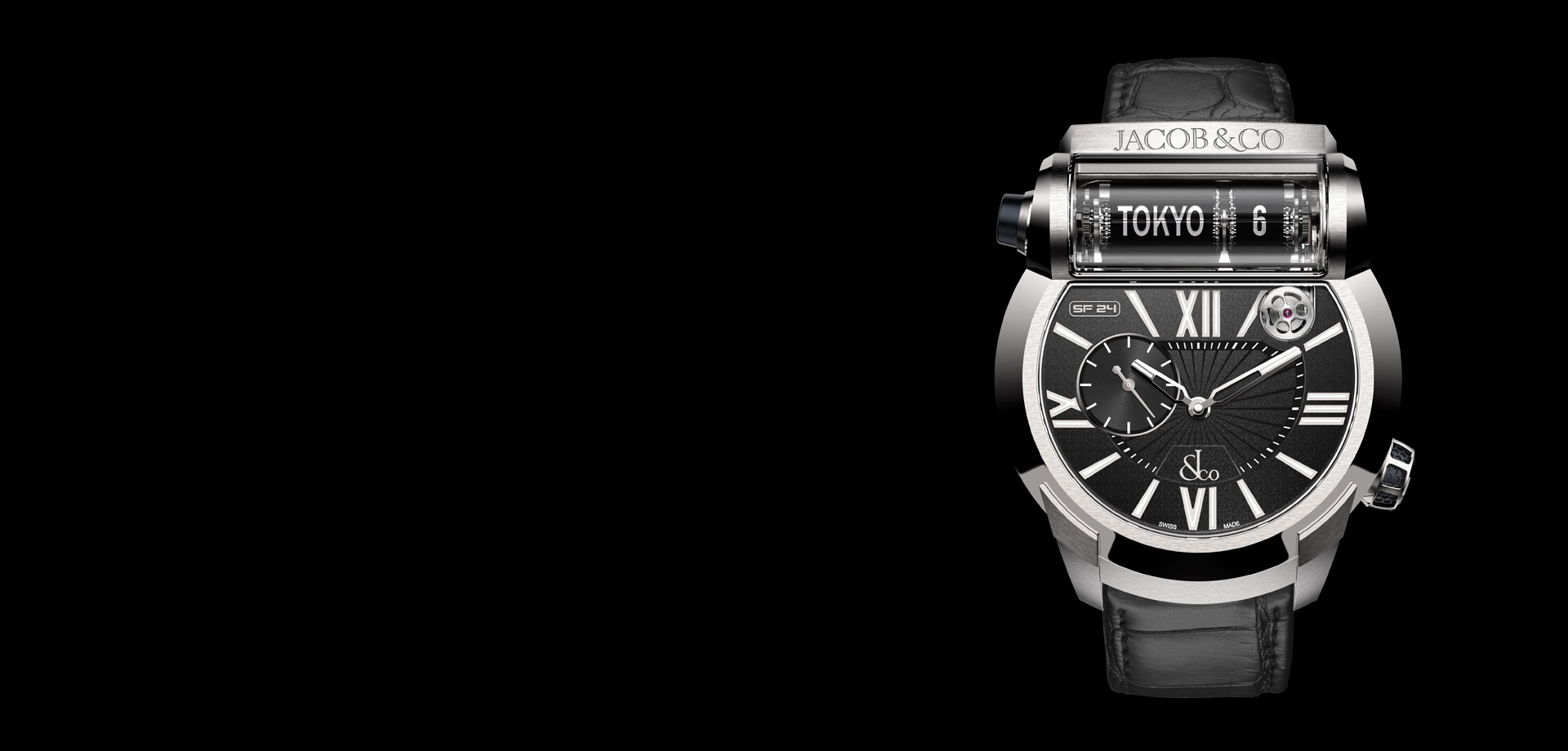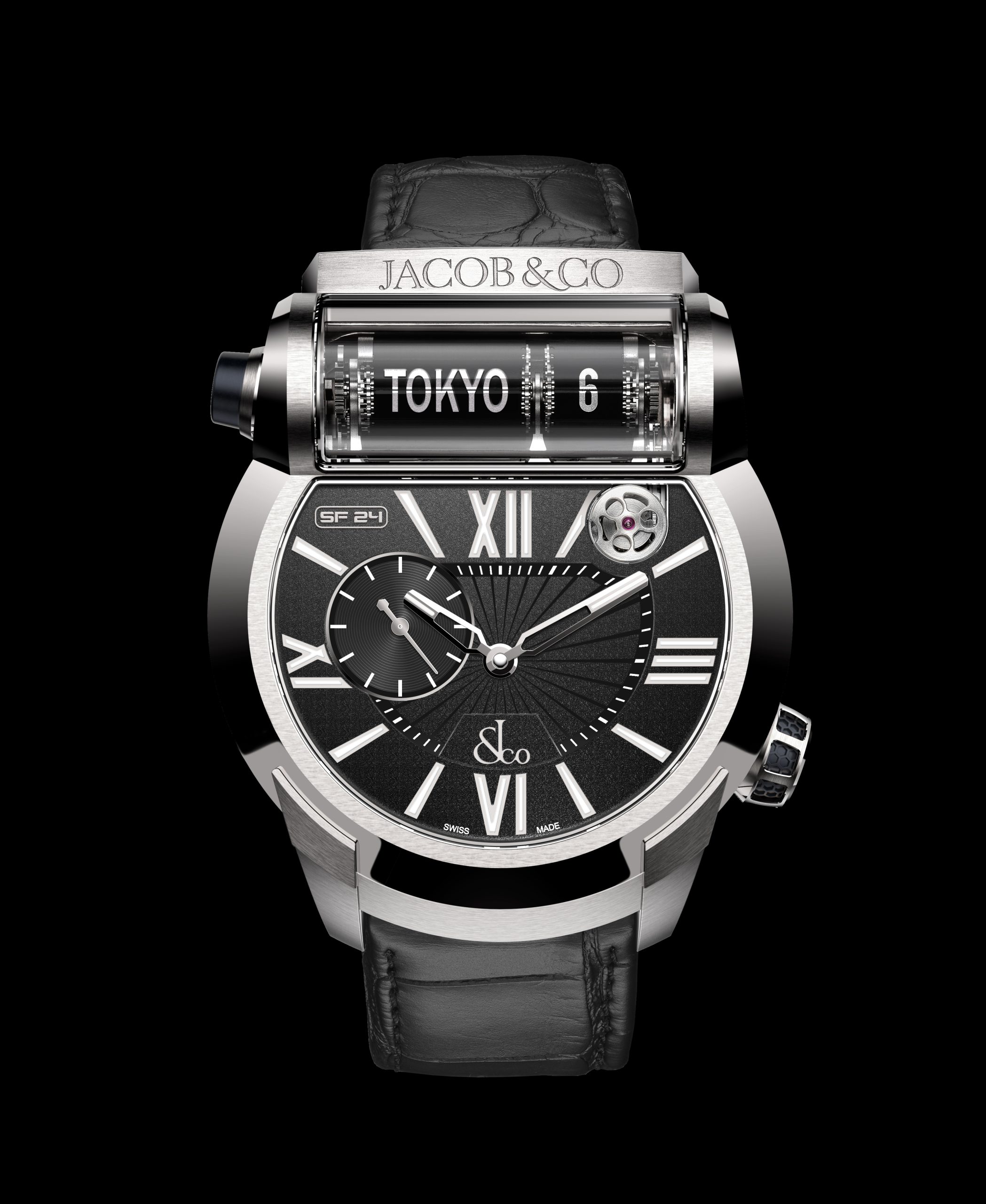 Unique world time movement and display, exclusive to Jacob & Co.