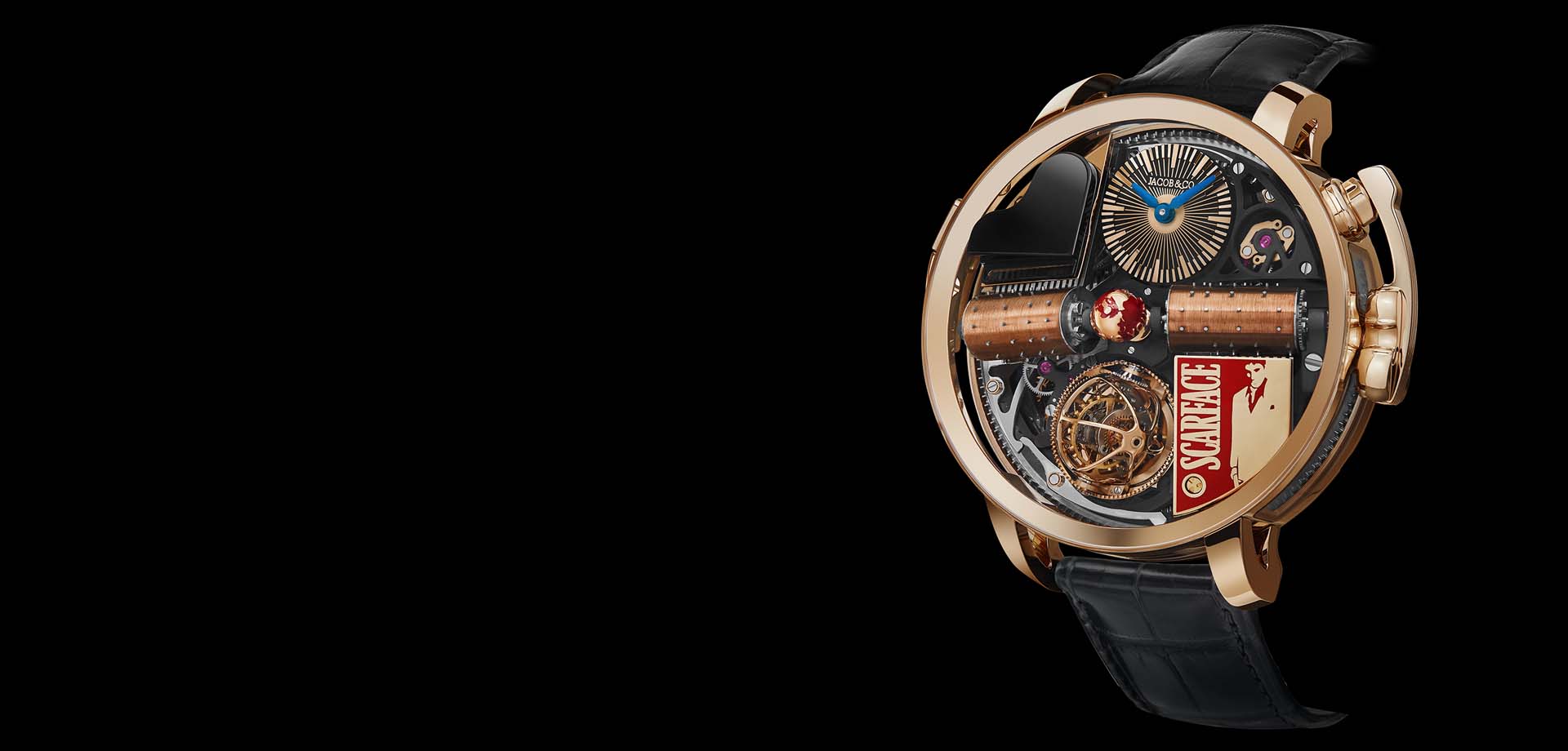 Brian De Palma’s Scarface from Universal Pictures had an incredible impact on entire generations of people all around the world. Memorable lines from the film like “Say hello to my little friend!” “Who put this thing together? Me, that’s who! Who do I trust? Me!” “I always tell the truth. Even when I lie” and “Say hello to my little friend!” are etched in our collective social consciousness. To honor this seminal movie, Jacob & Co. has expanded the Opera collection to include the Opera Scarface, playing “Bolivia” from the movie on the integrated music box. Jacob & Co. worked with Universal Brand Development to create this unforgettable timepiece.