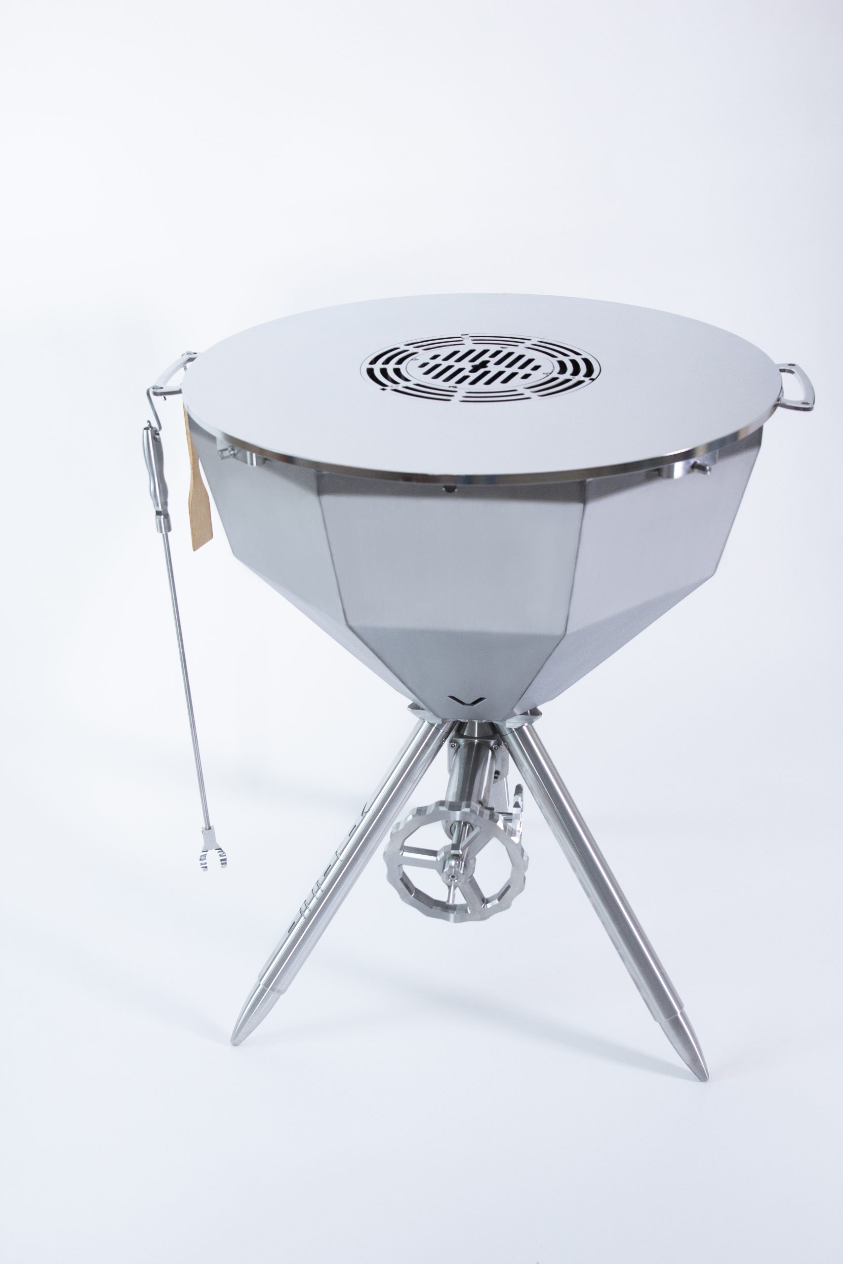 The legs of the tripod base can be individually adjusted up to an inch (2,5 cm) to provide excellent stability on uneven surfaces. The overall weight and low center of gravity ensures that your grill remains completely steady under all circumstances. Each Vilicci grill features an easily adjustable fire pit that allows you to comfortably match the intensity of heat to any food you are making.