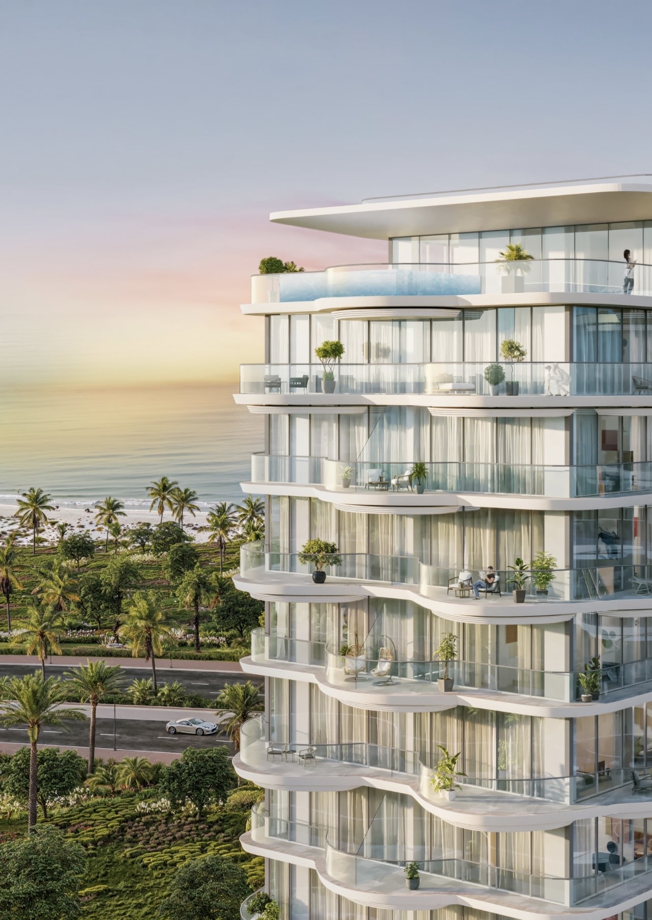 This exceptional one to four-bedroom residence sets a new standard of comfort and elegance for discerning buyers who value space, style, and sophistication. Expansive interiors are bathed in natural light, complemented by floor-to-ceiling glazing, generous living areas, and panoramic sea views that create an immersive connection with the water.