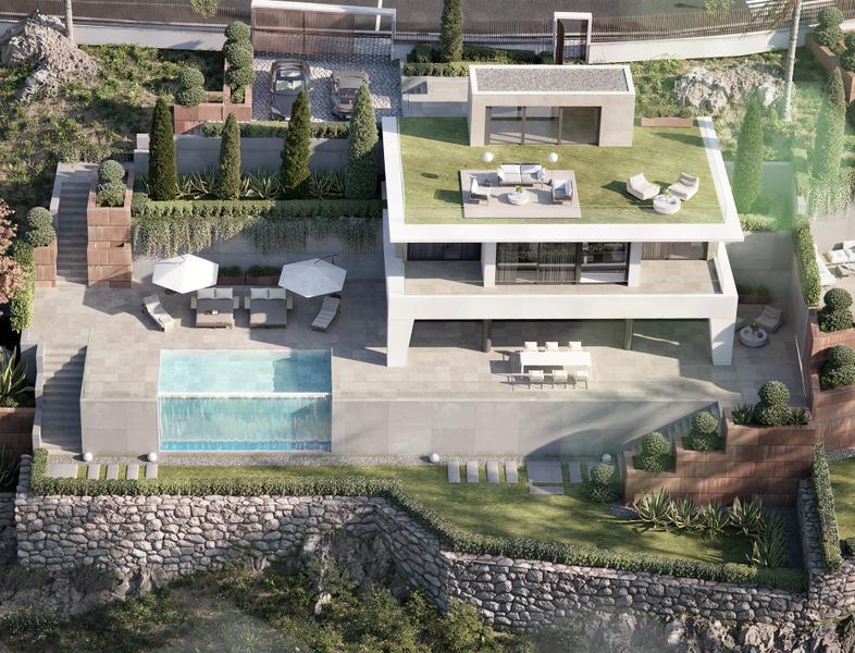 This beautiful villa features 3 bedrooms, 3 bathrooms, a large open living-dining area, an open plan kitchen, pleasant terraces with tiered gardens and a luxurious private infinity pool. The villa has spacious open areas and terraces that carefully connect the interior and exterior through the use of large windows, natural stone and top quality materials. The magnificent views of the Mediterranean from each of the tiered levels are stunning.
