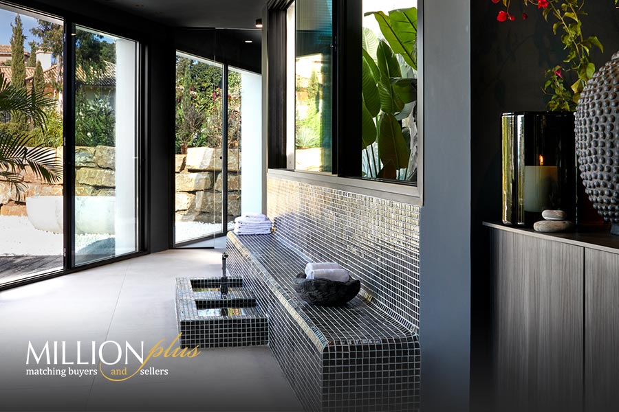 Nine bedrooms with en-suite baths, bodega, lucious living spaces and Modulnova kitchens are all accommodated in this spectacular Andalusian Villa. The grand sundeck features a very large swimming pool, kids pool, outdoor kitchen, a lounge area and dining spaces. The subterranean basement features a spa, gym, office, a bodega and guest bedrooms.