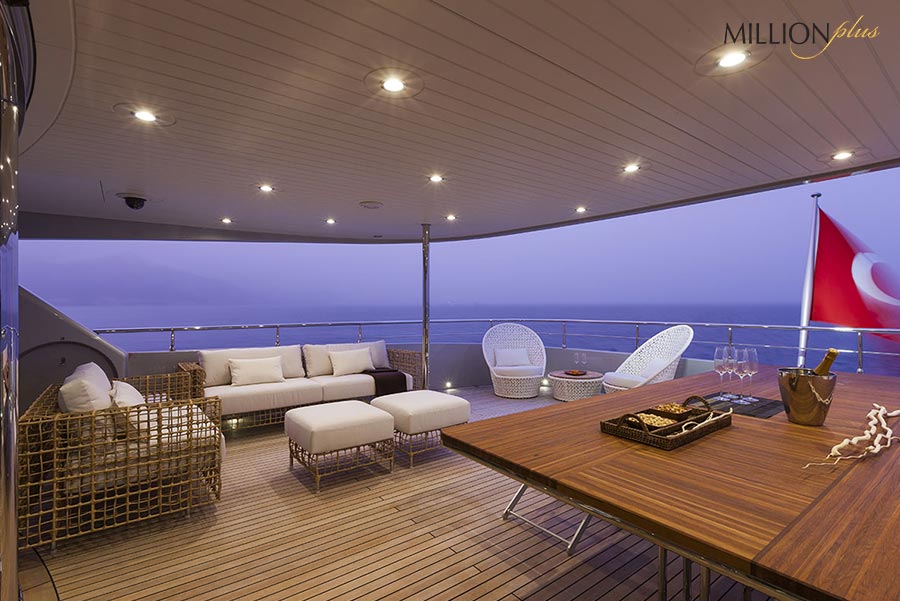 This Vulcan 46 is the second of this model to be built by Vicem in Turkey. Vicem was founded in 1991 and today the yard is widely recognised for its impeccable craftsmanship and allegiance to quality. Each Vicem-built superyacht is unique in character, exquisitely crafted and tailor-made with an artisan style to suit the requirements of each individual owner. The Vicem shipyard is well known for its timeless designs, and the contemporary exterior profile of the Vulcan 46 gives the yacht wide appeal. Spacious, bright and with a curvaceous art deco-inspired interior design, the attention to detail elevates this yacht into a class of her own. Still under construction, an owner has many opportunities to customise the interior décor to their exact taste. Across the Vulcan 46’s four decks, there’s accommodation for 12 guests and three main exterior spaces. The accommodation is arranged with the full-beam master stateroom on the main deck, positioned forward of the saloon, and the guest suites are on the lower deck. The master stateroom benefits from a full ensuite bath with Jacuzzi, and an adjacent owner’s office. The configuration of the guest cabins comprises a VIP, two doubles and two twins. The Vulcan 46 also has a gym on the main deck and a stylish saloon with formal dining table. Ascending to the upper deck, the Vulcan 46 has a large exterior dining area and plenty of space for sunbathing to aft. There’s a saloon with a bar counter and the lounge offers elevated, panoramic views. Topping the Vulcan 46 is an impressive 98sq.m flybridge that boasts a Jacuzzi, relaxed lounge area, al fresco dining table, bar and sun loungers. The Vulcan 46 has a tender garage at her stern with ample stowage space for a 6.5m tender, two jet skis and room remaining for additional water toys and equipment. The Vulcan 46 had a top speed of 16 knots and at her economical 12-knot cruising speed, delivers a 3,500nm range. The Vulcan 46 from Vicem Yachts is a yacht without compromise and fantastic opportunity for an owner to acquire a brand-new vessel, built with passion and to the very highest standards.