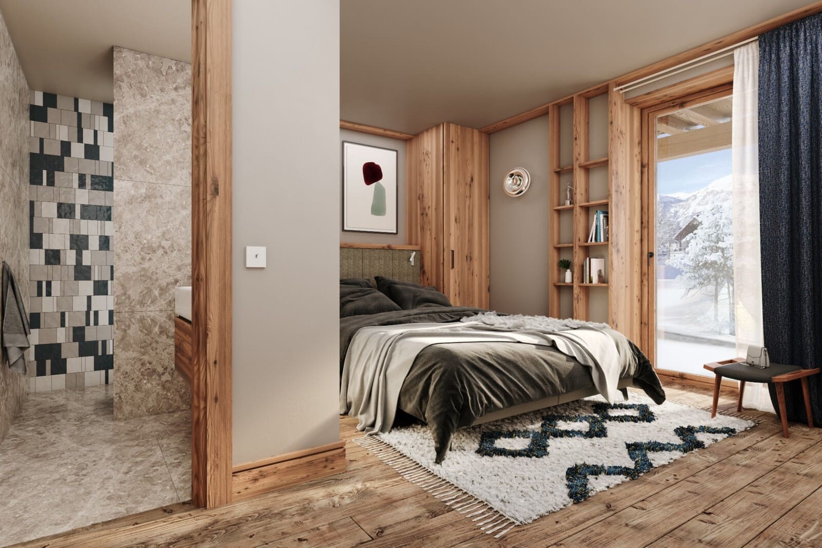 Built across four floors, this south west facing 5 bedroom chalet offers approx. 378 sq.m of living space, with a generous 45 sq.m master bedroom and over 60 sq.m of terraces and balconies. The spacious chalet will be completed to the highest standard and will boast a splendid cathedral living room area opening onto a stunning south facing terrace.