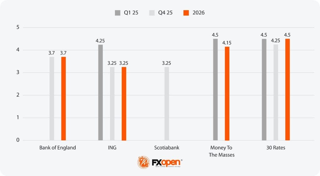 Deutsche Bank takes a more measured approach in their November 2024 report, forecasting a drop to 3% by early 2026. They highlight concerns about wage inflation remaining sticky, which could make the Bank of England hesitant to cut too aggressively.